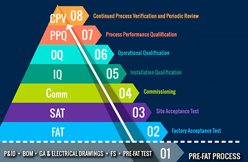 A Qualificação de Equipamentos contempla etapas e sub etapas de um processo sistemático documentado de demonstração, verificação, análise e conclusão que um equipamento, que pode afetar a qualidade do produto, atende aos requisitos especificados e aprovados. Contudo, a estratégia de qualificação, bem como o planejamento de todas as etapas deve estar definida no Plano de Validação, e os testes e as verificações necessárias devem ser claramente descritos em protocolos previamente aprovados.