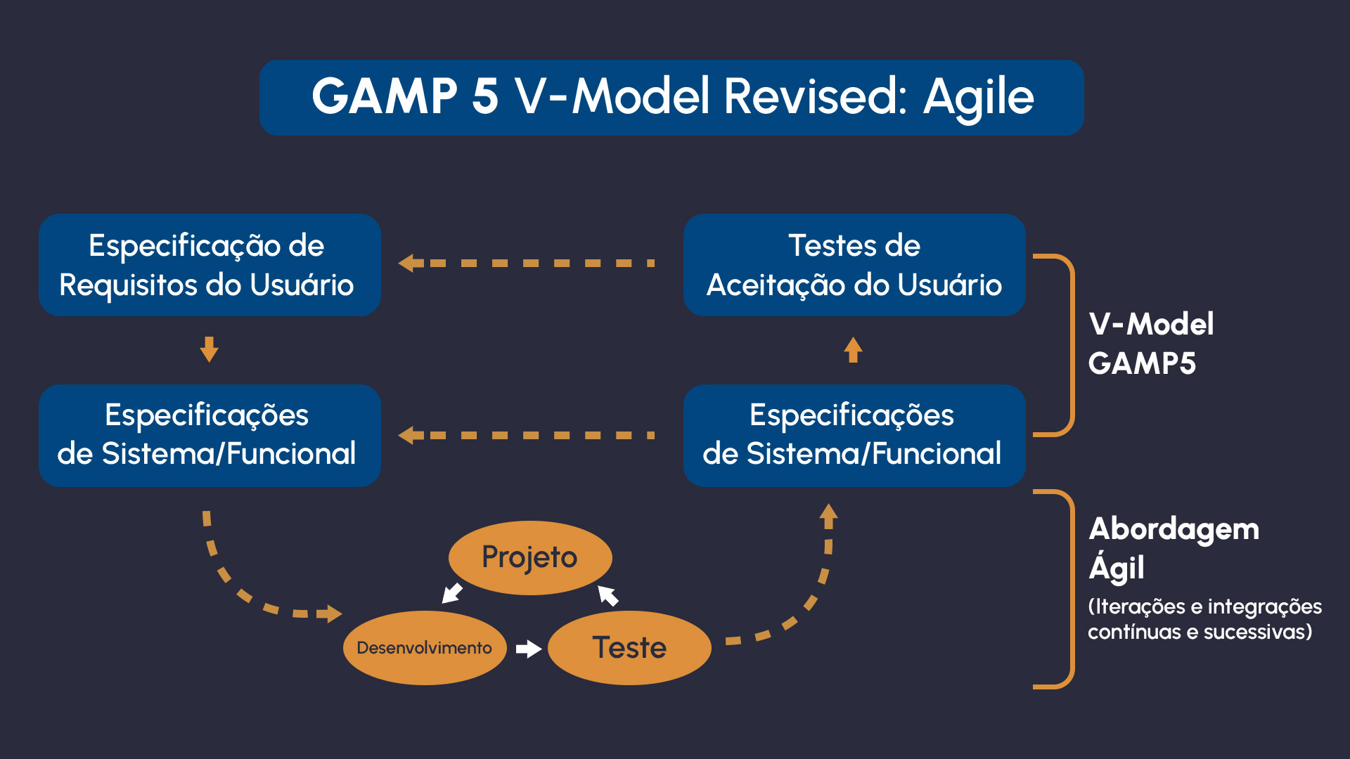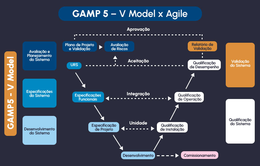 Atualmente o guia GAMP 5 (2ª Edição) sugere uma abordagem baseada na metodologia ágil, que não é linear, representando uma mudança de mentalidade e cultural.
